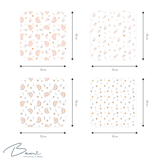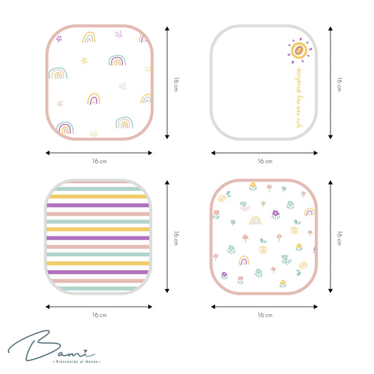 Set 4 Toallitas Faciales de Muselina Arcoiris