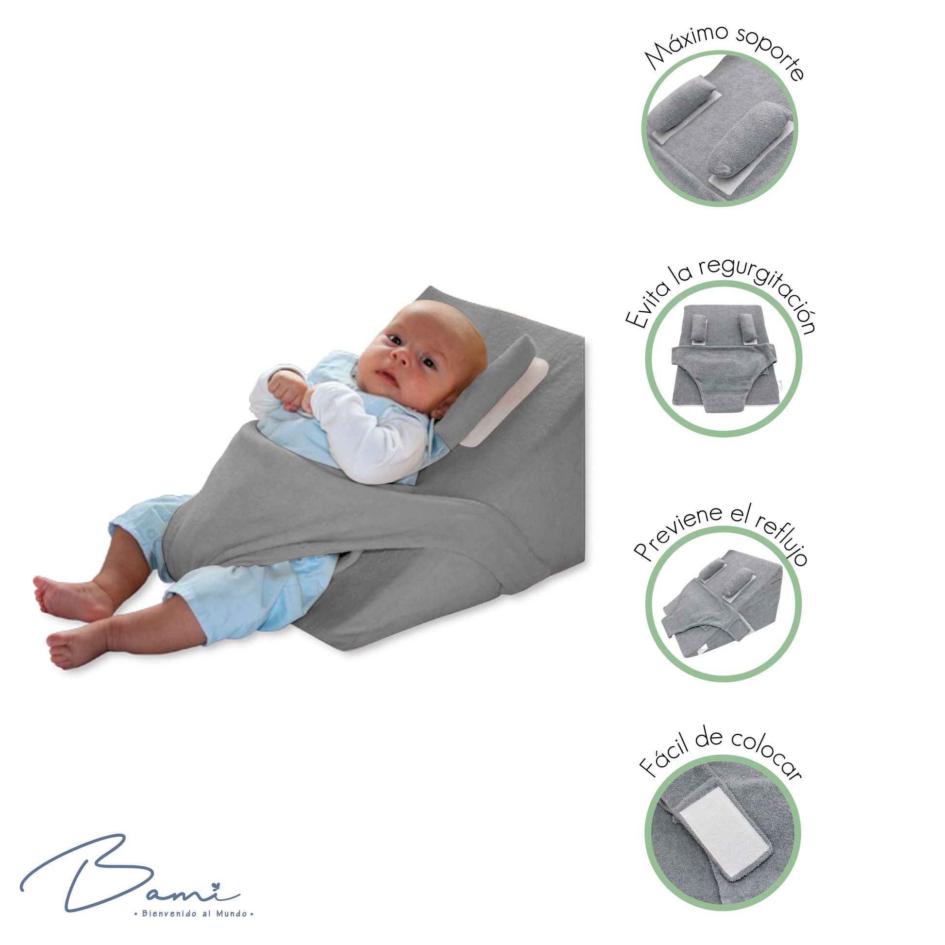 Permite inclinar al bebé sobre su espalda, evitando así que el alimento se regrese por el esófago.