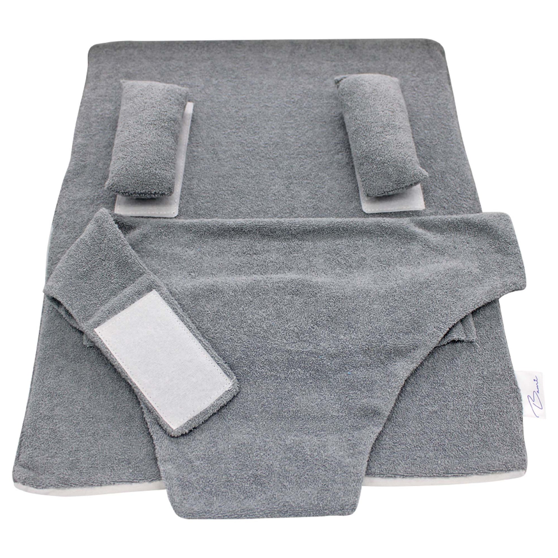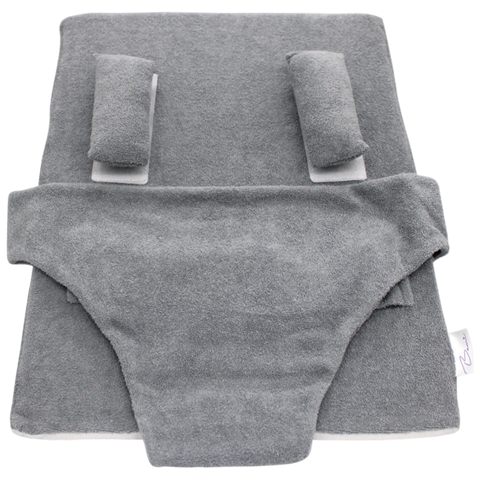 Incluye soporte de cabeza y sistema ajustable con contactel para sostener al pequeño.