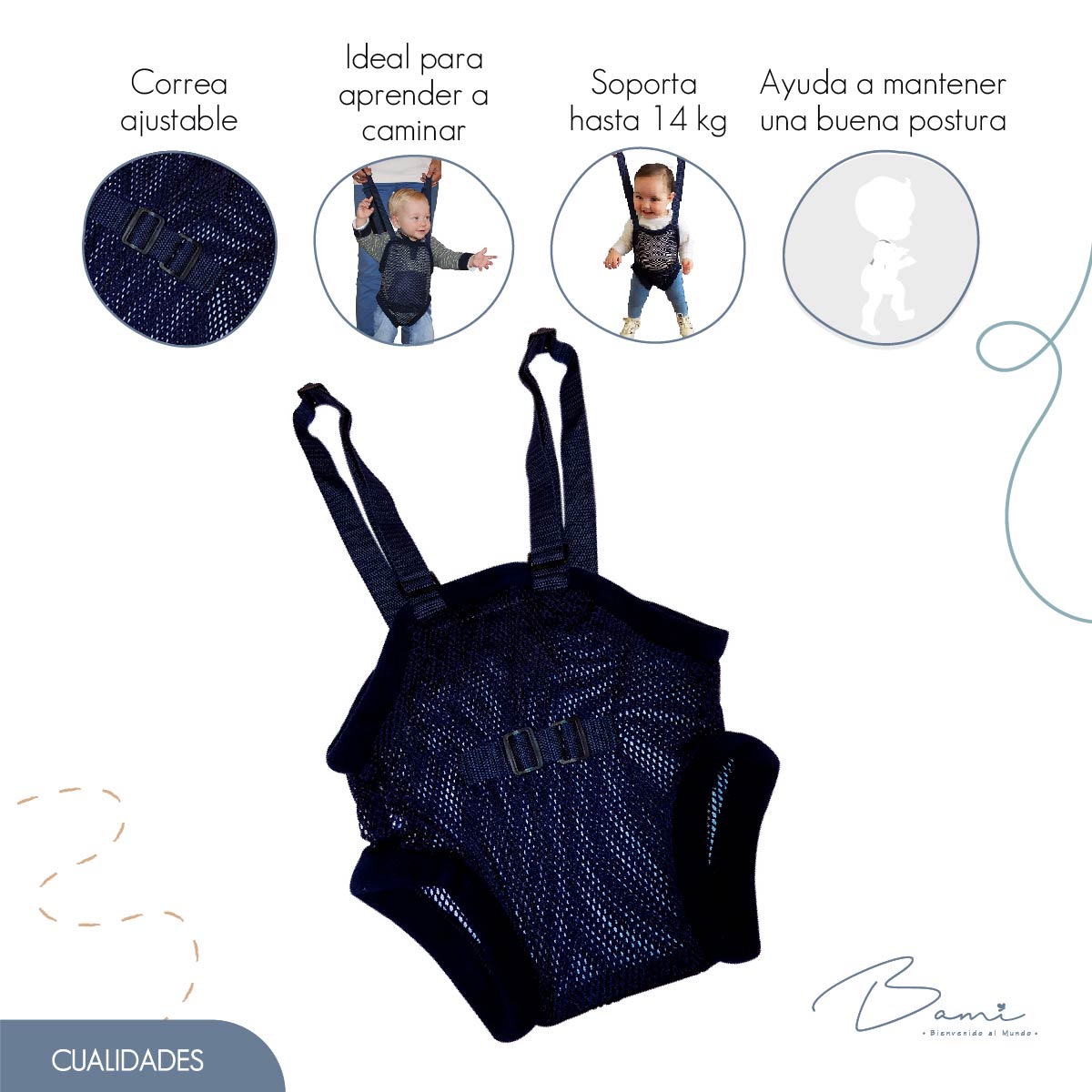 Este entrenador ajustable ayuda a desarrollar el equilibrio de bebé mientras aprende a caminar, de la misma manera ayuda a quien esté con bebé a evitar dolores de espalda y cintura al sostenerlo en una postura erguida.